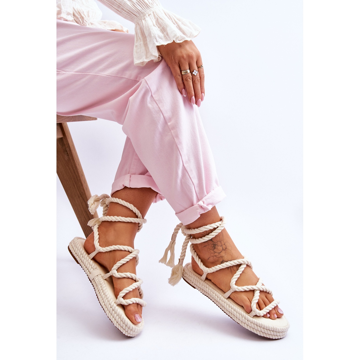 Detalii: Sandale legate pe o platformă groasă Bej nu poate aștepta