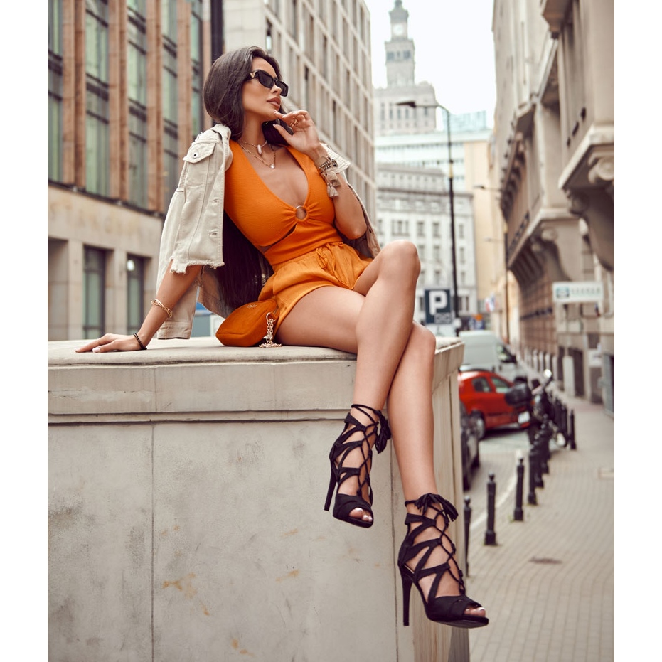 **FL1 Tied High Heel Sandals Black Galla** este o alegere extrem de stilată și elegantă pentru femeile care doresc să-și sublinieze latura sofisticată. Aceste sandale la modă cu toc înalt se caracterizează printr-un design unic, cu legături finisate cu franjuri, care nu sunt doar atractive din punct de vedere vizual, ci și permit o potrivire perfectă la picior.