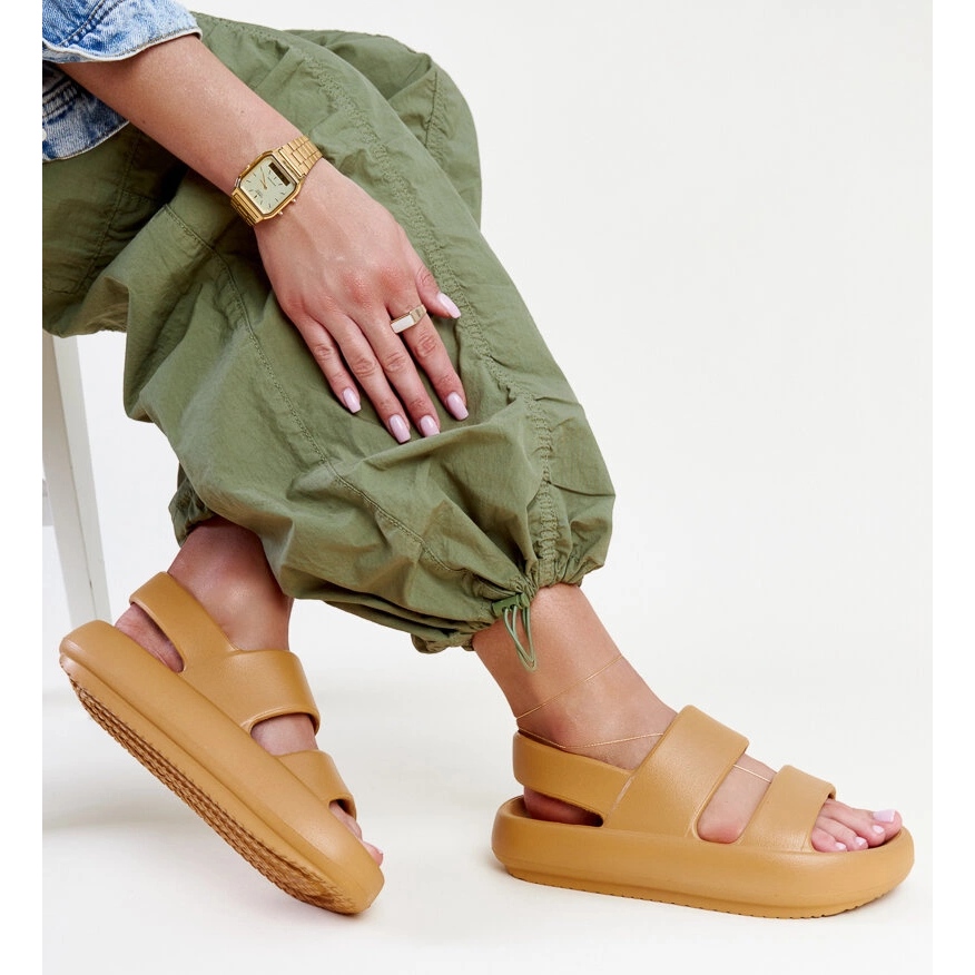 Culoarea maro face ca sandalele să se adapteze cu ușurință la multe stilizări de vară - atât la rochii aerisite, cât și la pantaloni scurți sau la pantaloni de vară. Materialul inserției de spumă oferă o amortizare adecvată, ceea ce înseamnă că vă puteți bucura de ei toată ziua, fără a simți disconfort.