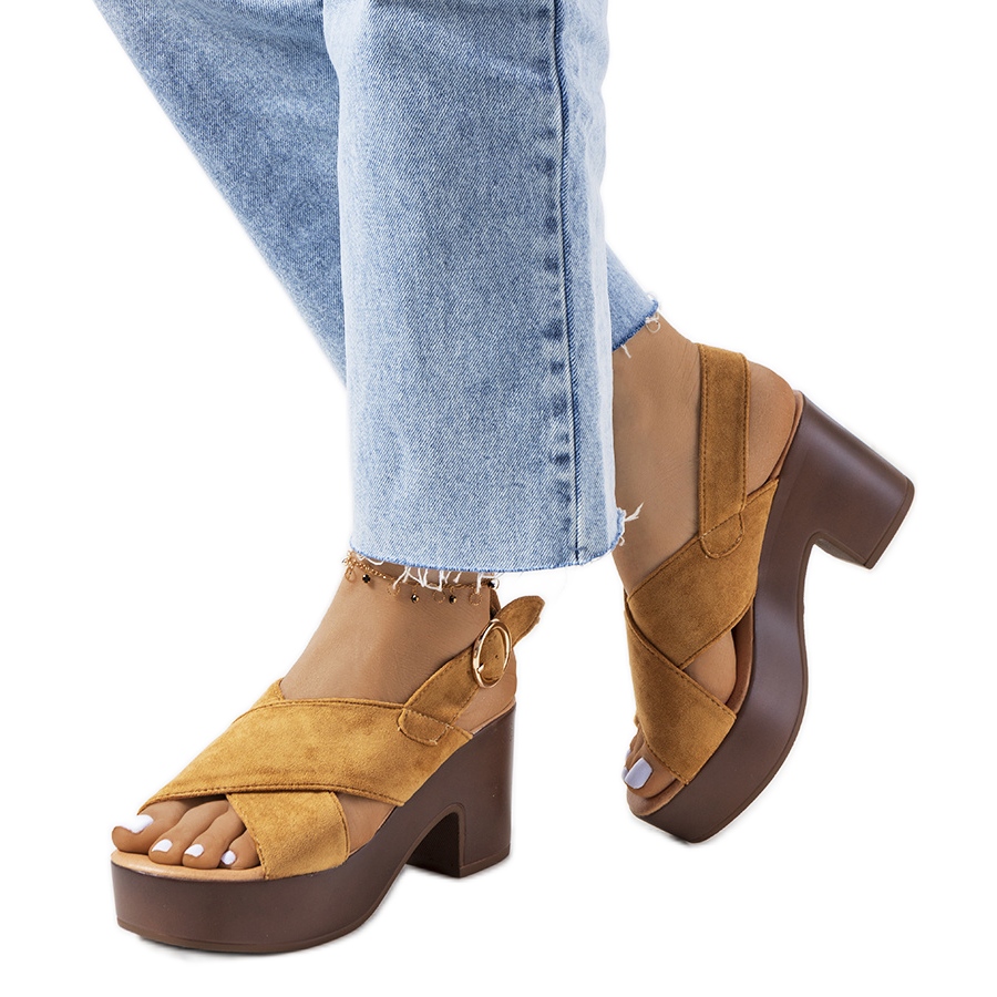 Partea superioară este confecționată din piele ecologică de înaltă calitate, care nu numai că le conferă un caracter unic, dar le asigură și confortul de purtare pe tot parcursul zilei. Sandalele sunt disponibile in culoarea camel, care se potriveste perfect cu diverse tinute de vara.