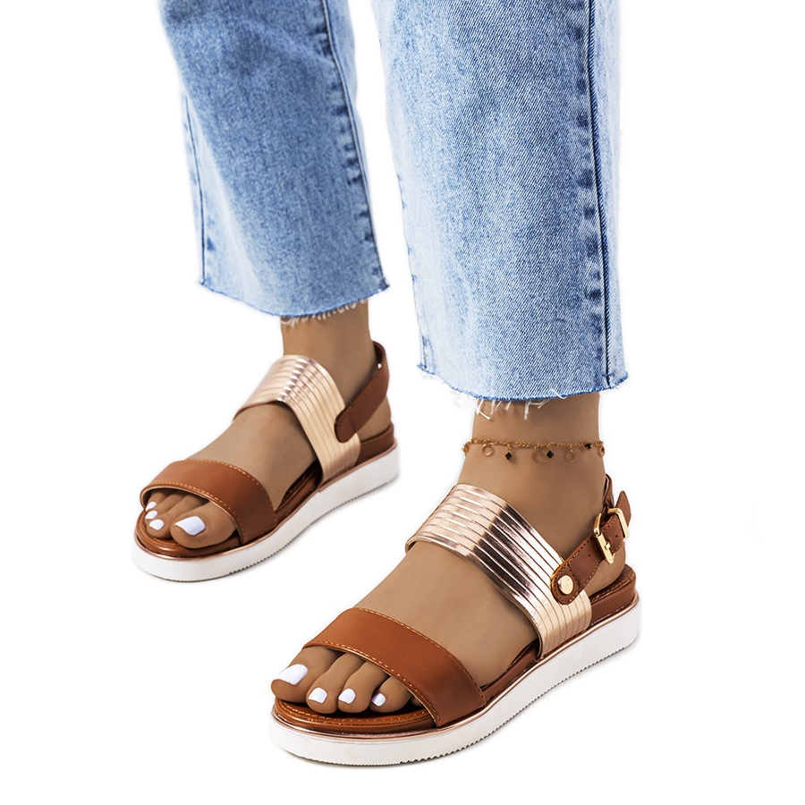 Inna marka Sandale maro cu inserție Larochelle metalizată de aur