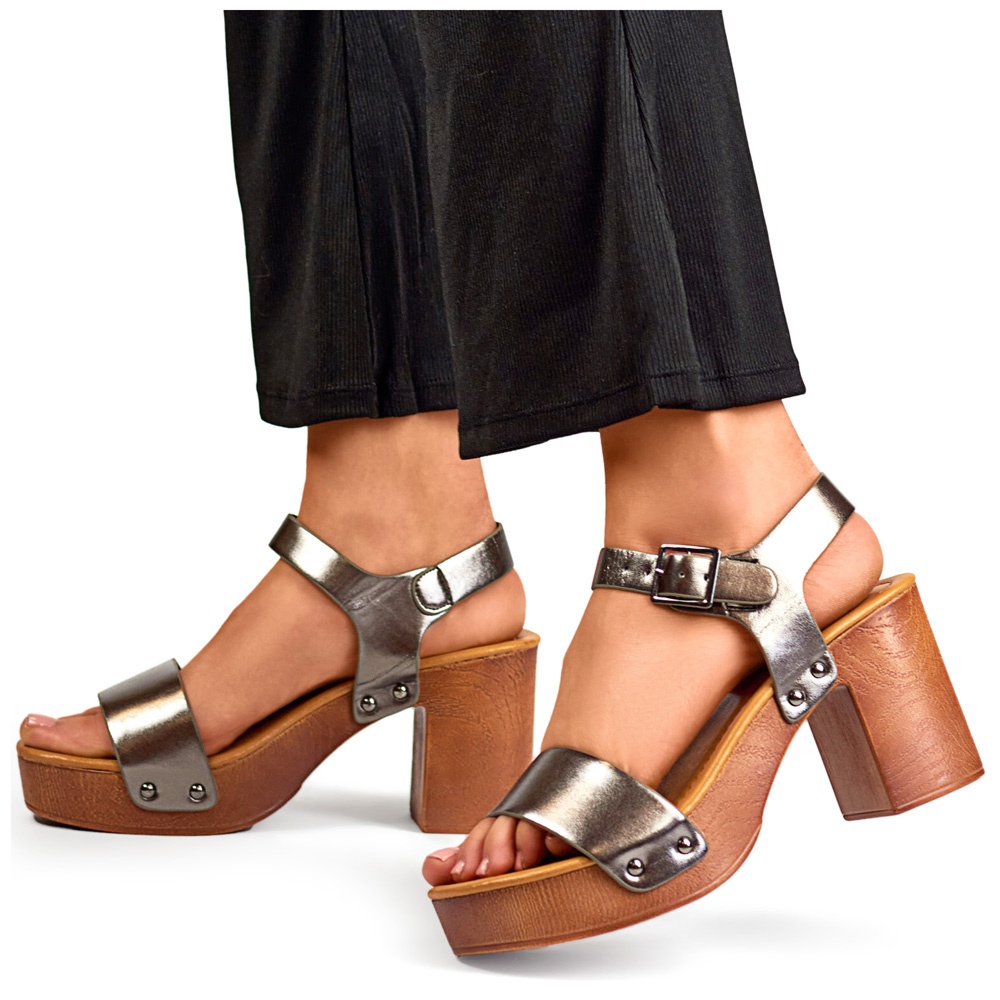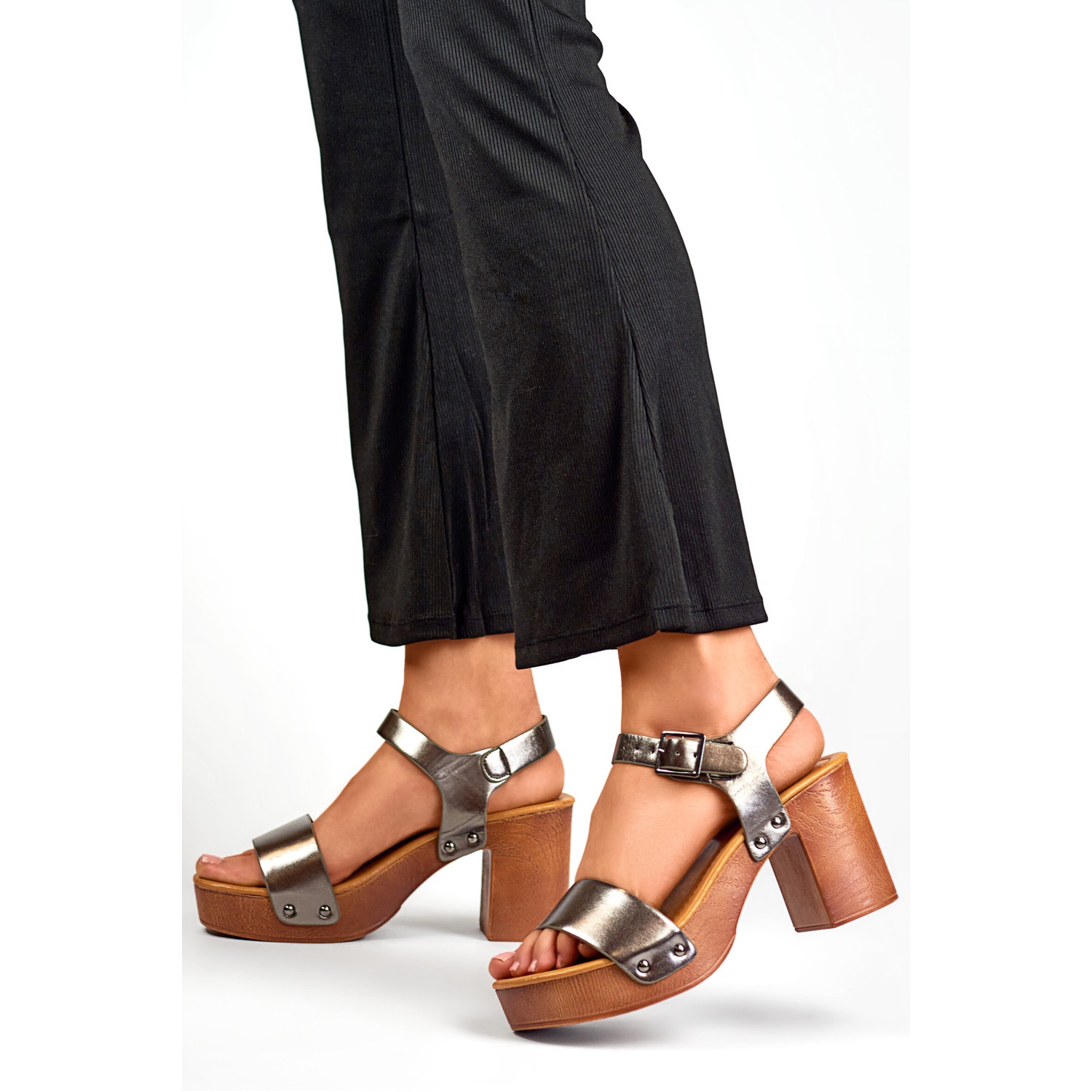 Detalii: Sandale metalice cu toc platformă din lemn argint