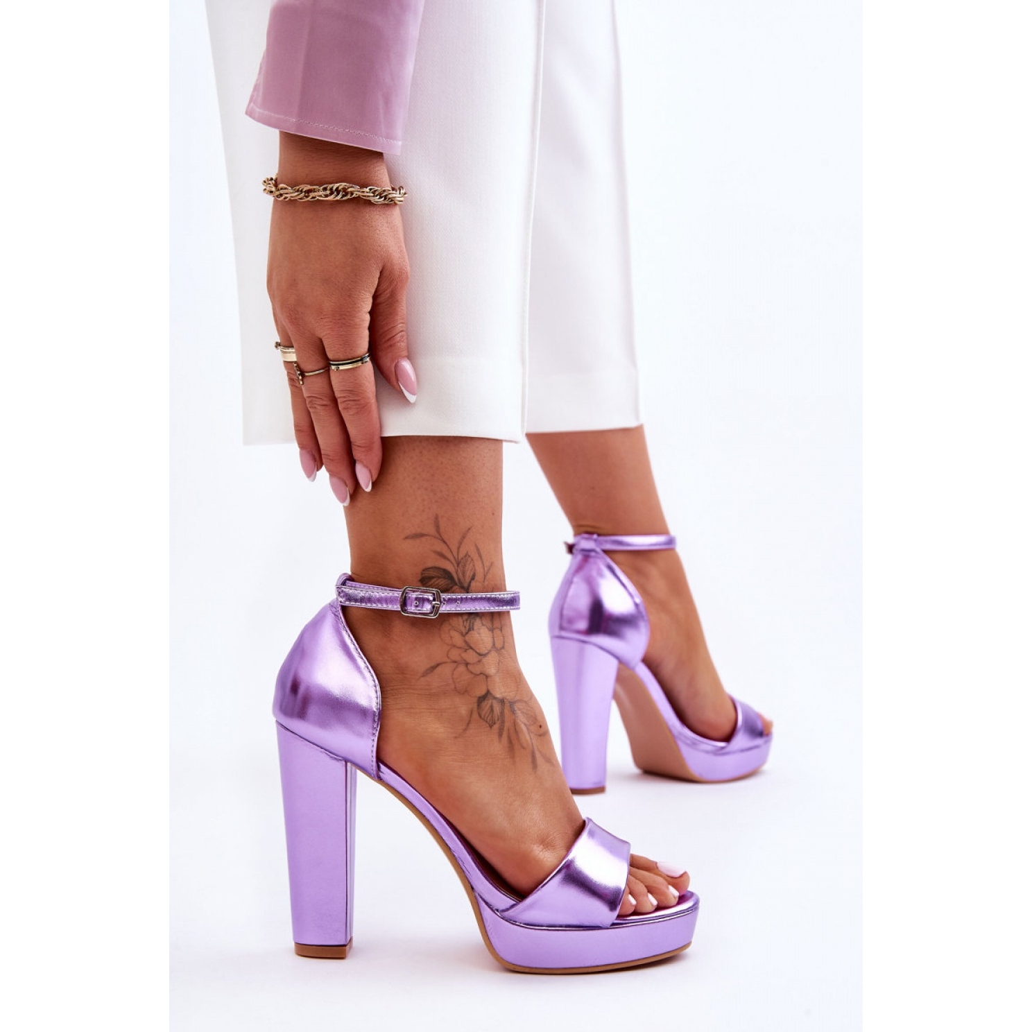 Sandalele de dama la moda sunt din piele ecologica. Acest model are o prindere clasică cu o curea reglabilă cu cataramă. Sandalele au fost așezate pe o platformă și un toc înalt sub formă de stâlp. În plus, acest model are un călcâi rigid. Cu siguranță vei folosi acest pantof în multe situații!