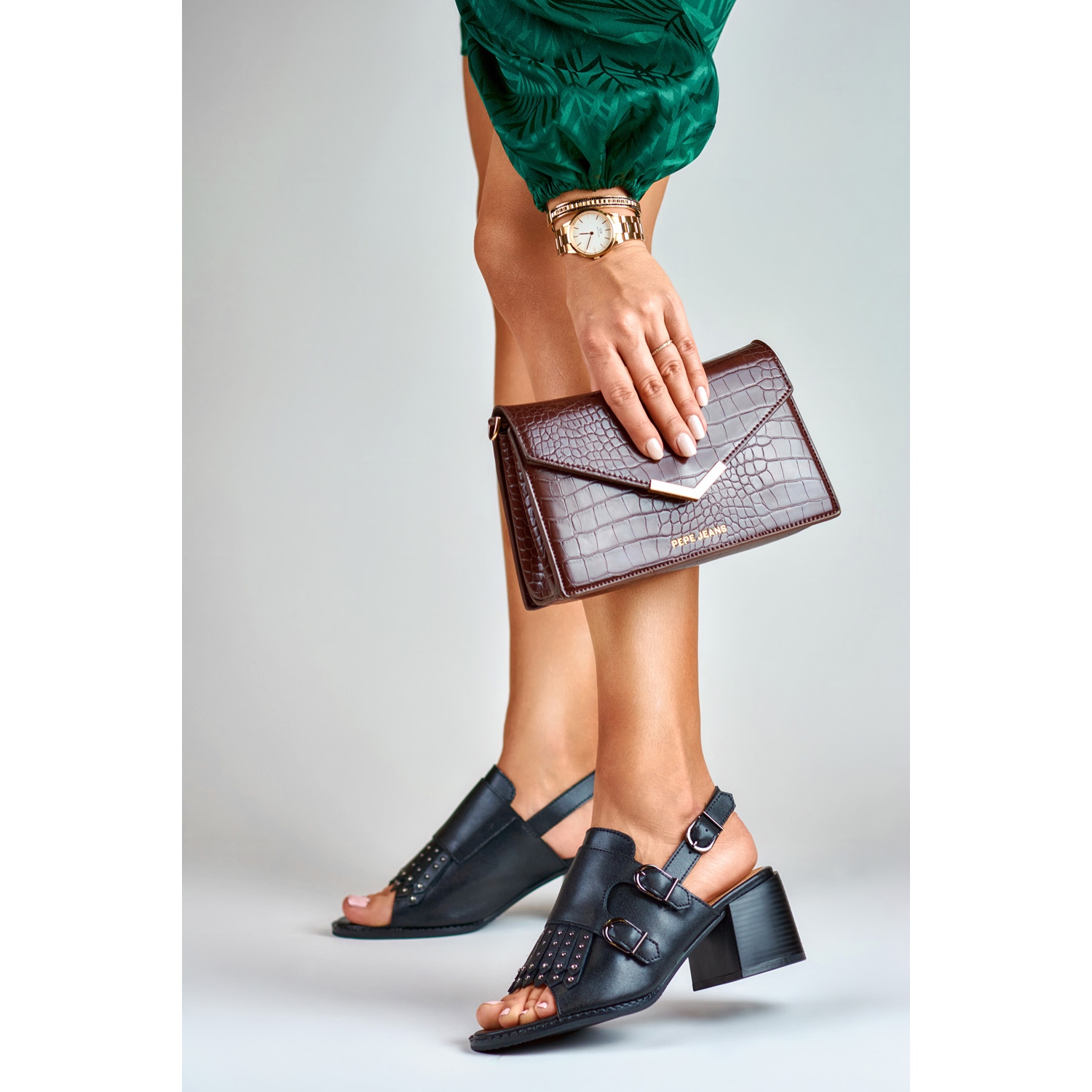 Sandalele au un deget deschis și tocuri mai largi, stabile, cu o înălțime de 6 cm, ceea ce le face perfecte pentru zilele de vară și ieșirile de seară. Un avantaj suplimentar este catarama, care permite punerea ușoară și rapidă. Insertul este, de asemenea, din piele naturală, care asigură moale și confort pentru picioare.
