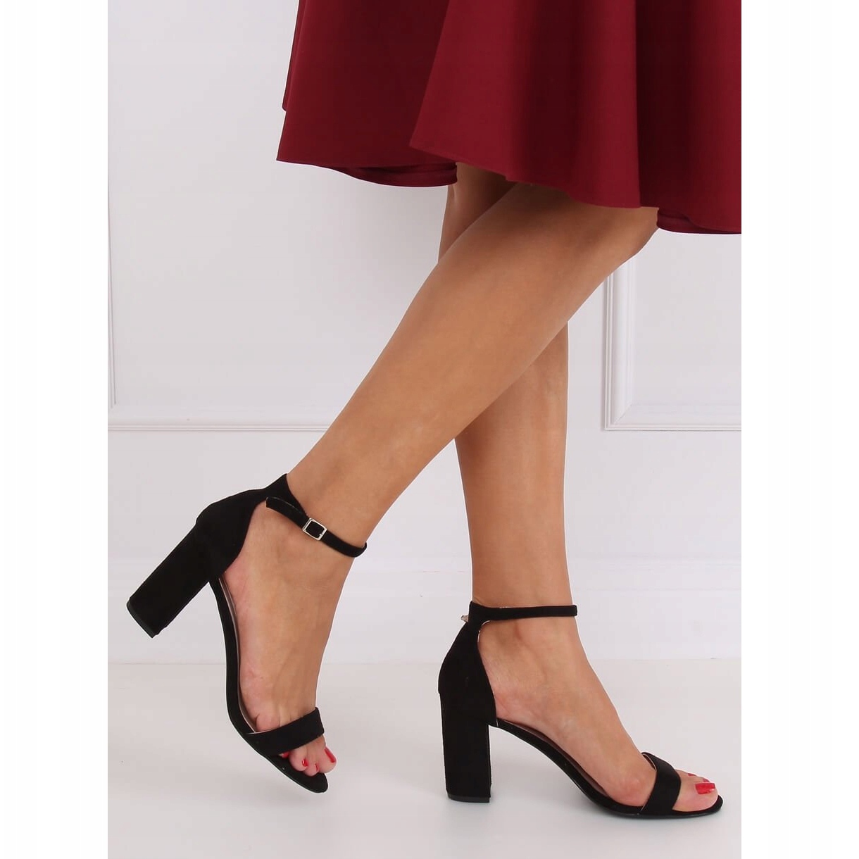 **CD59P Sandalele negre cu toc înalt** sunt o propunere extrem de elegantă pentru fiecare femeie care vrea să îmbine stilul cu confortul. Confectionate din piele intoarsa ecologica de inalta calitate, aceste sandale de dama au un design clasic care nu se demodeaza niciodata. Un stâlp stabil de 8,5 cm înălțime asigură nu numai un aspect atractiv, ci și confort la purtare, permițându-vă să vă mișcați liber pe tot parcursul zilei.
