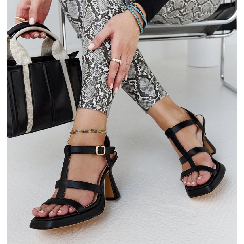 Detalii: Sandale negre cu toc inalt din piele ecologica Pirjo negru