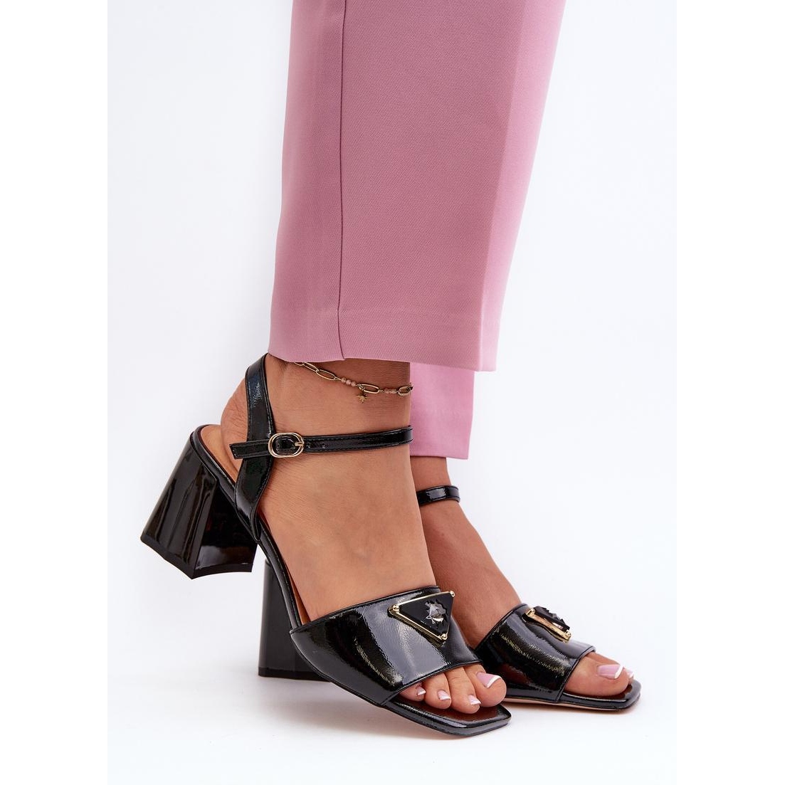 S.Barski S.Barski Sandale negre cu toc lacuit negru