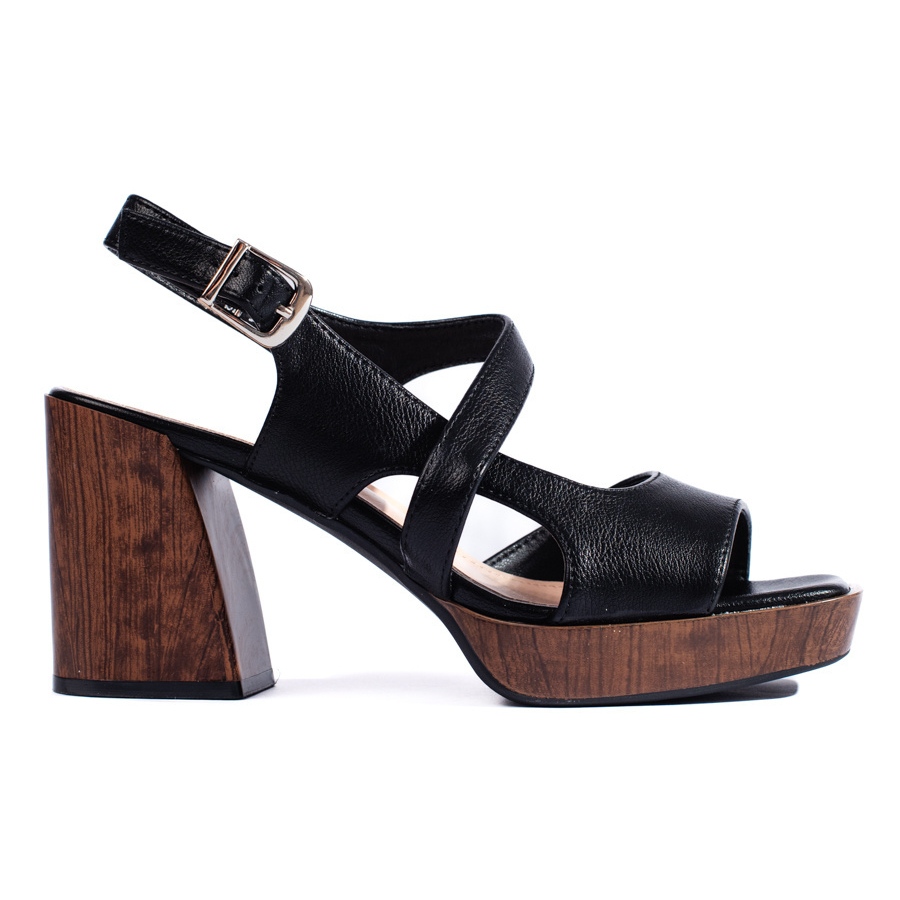 Detalii: Sandale negre cu toc lat de Sergio Leone negru