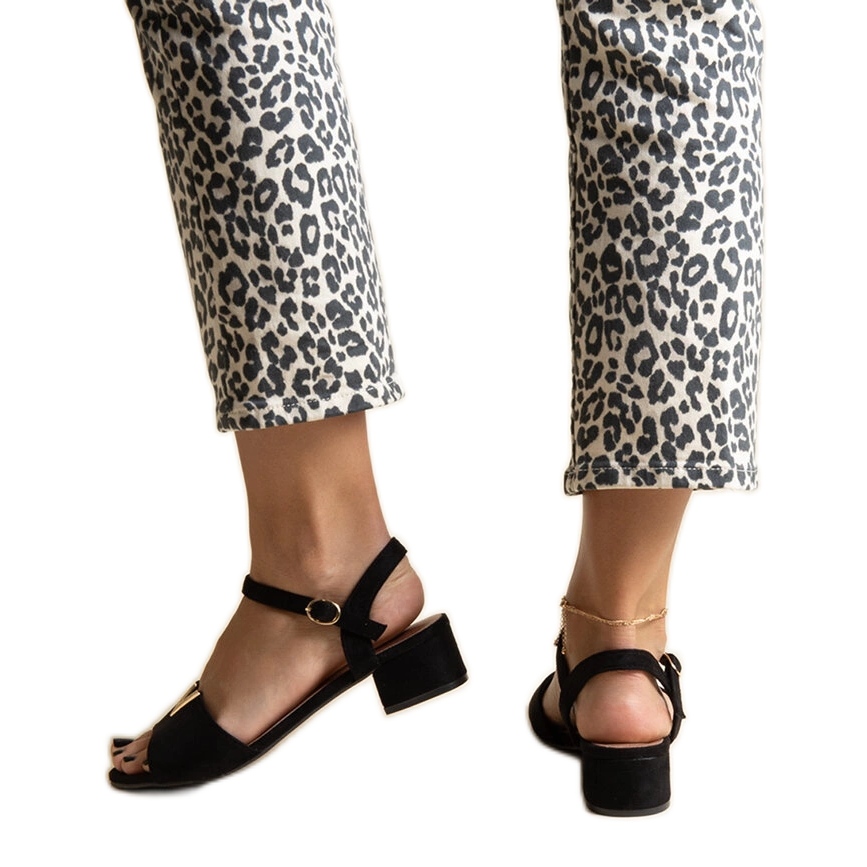 Inna marka Sandale negre cu toc mic, cu cataramă Horner negru