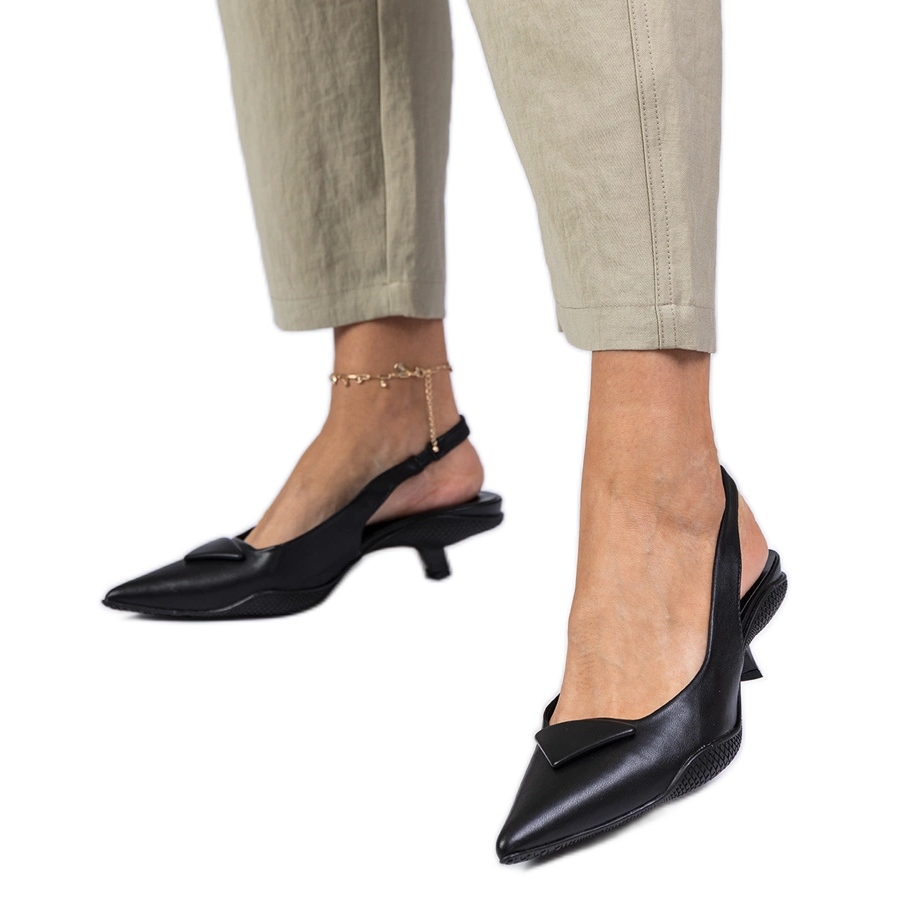 Un model clasic și modern LL-262P din colecția Keeshoes. Sandale din piele ecologică (exterioară și inserare) într -o culoare neagră universală (negru). Sunt caracterizate printr -un nas închis, ușor ascuțit și un călcâi în aer liber - o combinație perfectă de eleganță cu respirația de vară.