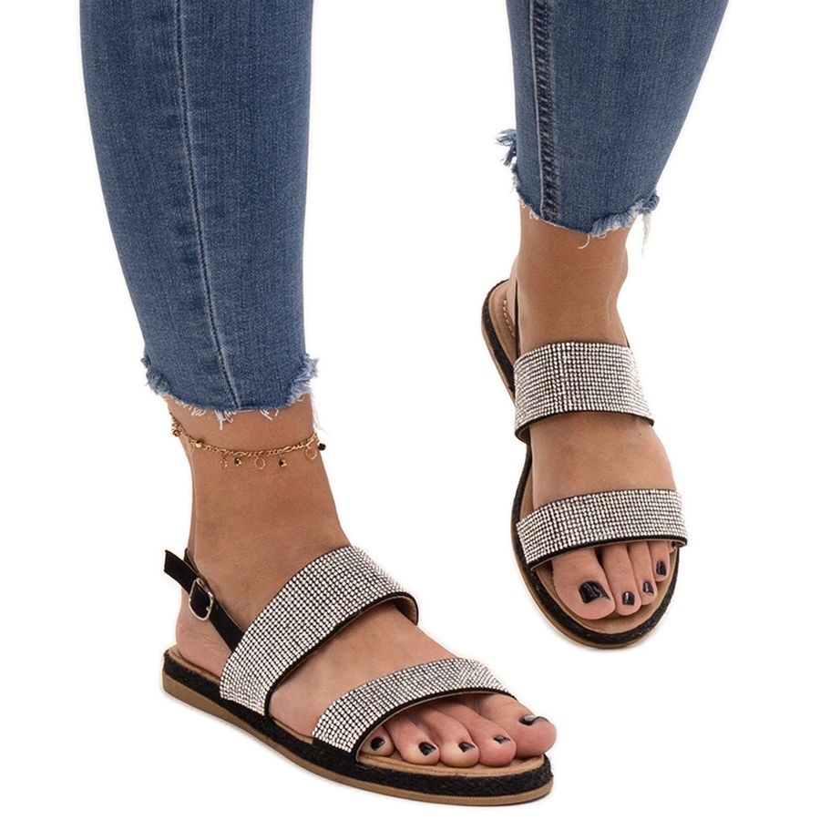 - Model: 2J14-P3012-02 Sandale negre decorate cu zirconi