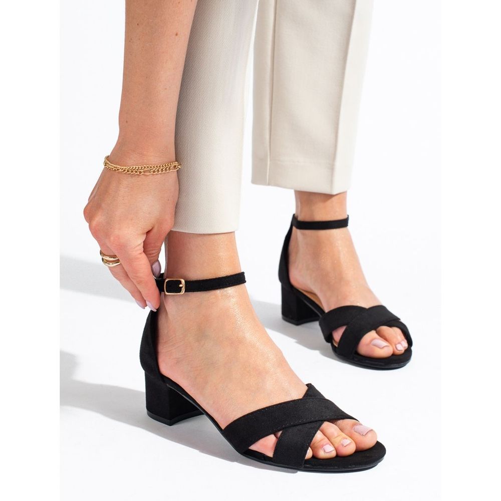 SHELOVET Sandale negre elegante din piele intoarsa cu toc joasa de la Shelovet negru