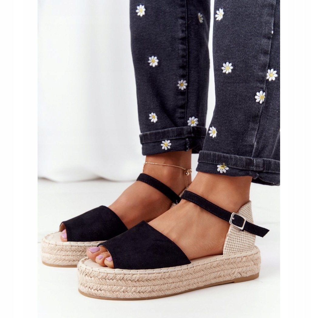 Detalii: Sandale negre Megara negre pe platforma împletită bej negru