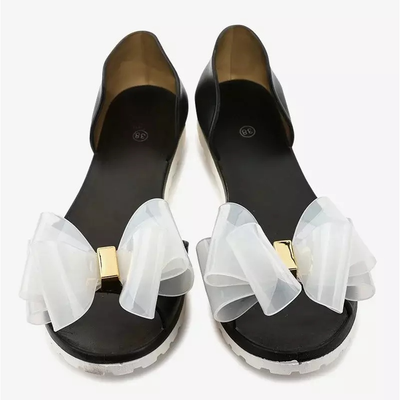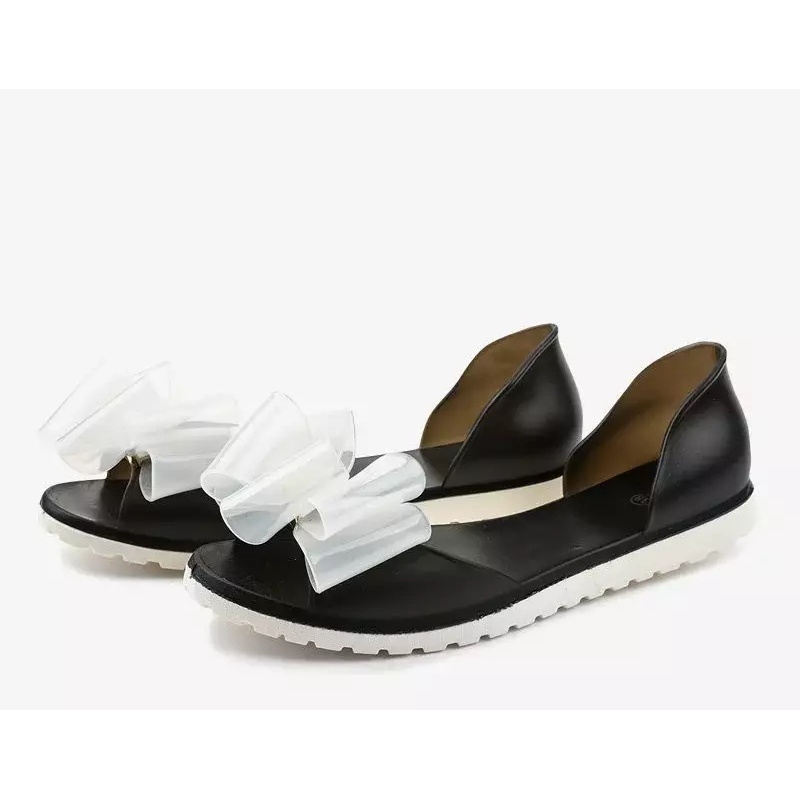 Descoperă eleganța și confortul în sandalele Meliska S5-3 negre, care vor fi alegerea perfectă pentru orice ocazie. Acești pantofi de damă stilați se remarcă prin designul lor modern și un accent original sub forma unei fundite mari albe cu o clemă aurie, care atrage atenția și adaugă farmec.