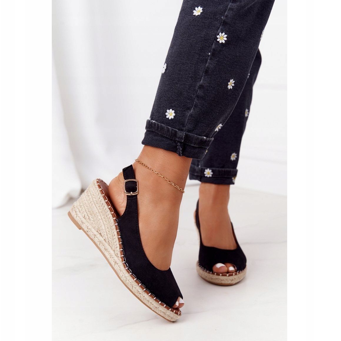 Sandalele cu pană PG1 de culoare neagră cu împletitură sunt o opțiune ideală pentru femeile care prețuiesc stilul și confortul. Realizați din piele de căprioară ecologică de înaltă calitate, acești pantofi eleganți arată extrem de atractiv și oferă confort la purtare datorită branțului moale din piele ecologică. Talpa anti-alunecare mărește suplimentar siguranța la mers.