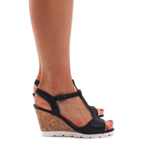 Detalii: Sandale negre pe pană YH2709 negru