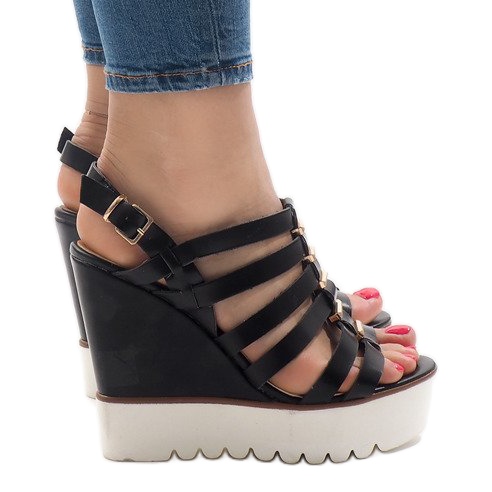 Sandalele negre cu platformă MC-12 sunt o alegere perfectă pentru femeile care apreciază atât stilul, cât și confortul. Aceste sandale clasice cu pană au un aspect elegant care se va potrivi perfect cu o varietate de stiluri - de la ținute de zi cu zi, casual până la ținute mai formale.