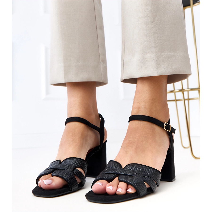Detalii: Sandale negre pe postul fixat pe cubul Farida negru