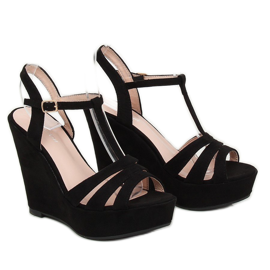 Detalii: Sandale negre pe toc cu pană A208 Negru