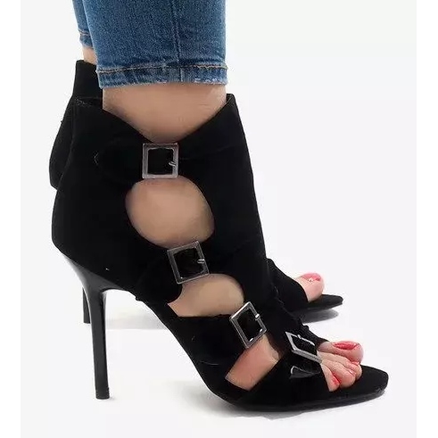 Inna marka Sandale negre pe toc înalt piele de căprioară GH048 negru