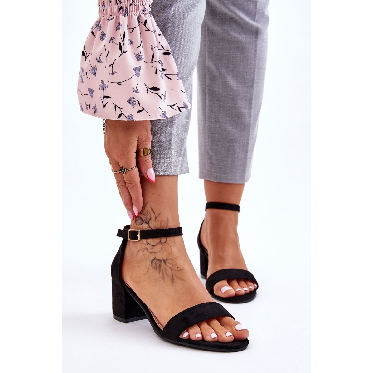 Detalii: PS1 Sandale negre Quincy din piele intoarsa cu toc mic negru