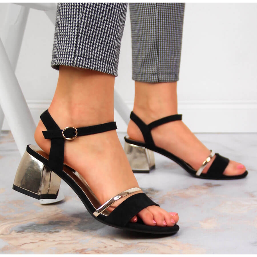 Descoperă stilul și confortul unic cu sandalele cu toc negru și auriu de la Sergio Leone. Aceste sandale elegante sunt combinația perfectă de design modern și manoperă de înaltă calitate, care cu siguranță vă vor atrage atenția și vă vor sublinia individualitatea.