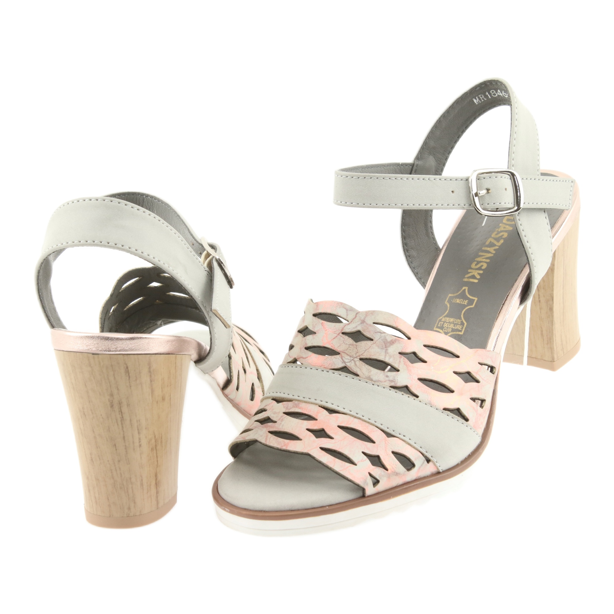 Detalii: M.Daszyński Sandale Openwork Daszyński pe postul de gri/roz din 1846