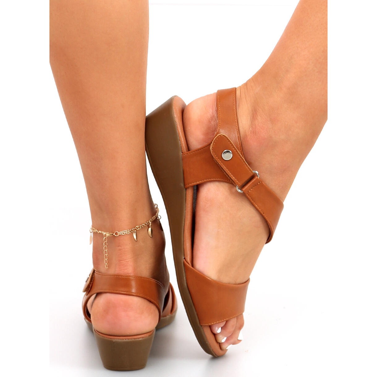 Inna marka Sandale pe o pană joasă Shara Camel maro
