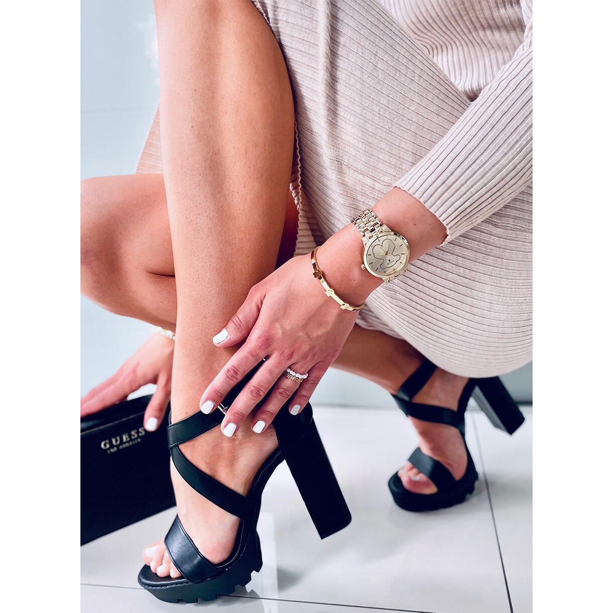 Bretelele clasice, încrucișate, se înfășoară senzual în jurul piciorului, creând un aspect atrăgător, care cu siguranță va atrage atenția. Confectionate din piele ecologica, sandalele imbina stilul cu grija pentru mediu. Lipsa nasului le face o alegere excelenta pentru zilele calduroase, iar inchiderea cu catarama le face usor de pus si scos.
