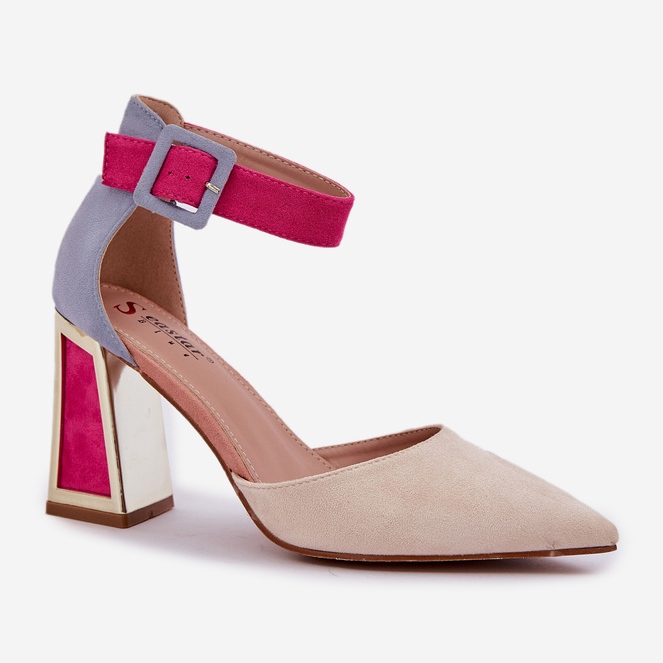 Descoperiți sandalele unice de pe stâlp cu degetele de la picioare indicate într -o culoare bej deschis, care va adăuga splendoare oricărei stilizări. Aceste sandale colorate din piele de căprioară sunt o propunere pentru femeile care doresc să iasă în evidență de mulțime și să adauge eleganță. Datorită călcâiului cu un element modern, auriu, oglindă, sandalele arată extrem de atractive și timp.