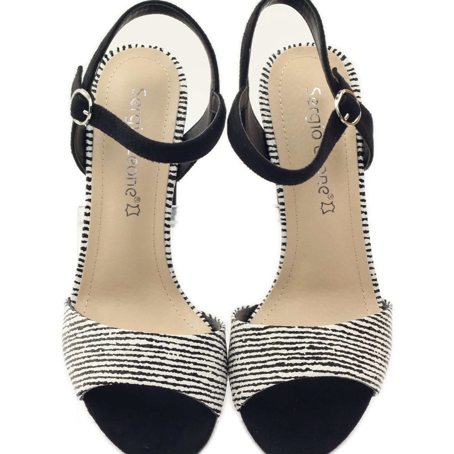 Sergio Leone Sandale pe stâlpul Sergio Leone 820 cu dungi alb negru