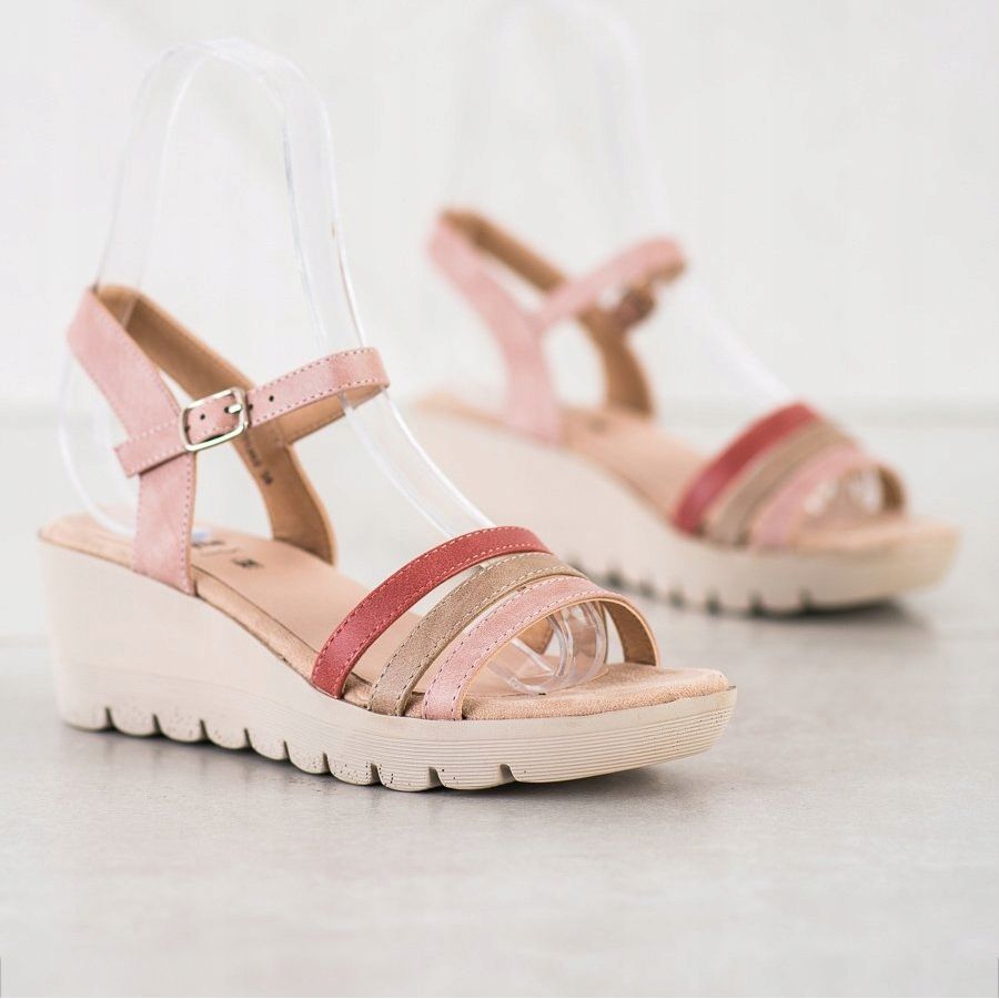 Aceste sandale cu pană elegante sunt perfecte ca o completare a stilurilor de zi cu zi, casual, asigurând în același timp încredere în pasul tău în timpul plimbărilor de vară sau al călătoriilor de weekend în afara orașului. O trăsătură caracteristică a modelului este o pană stabilă de 7,5 cm înălțime, care prelungește elegant picioarele, și o platformă de 2 cm, garantând confort chiar și după o utilizare prelungită.