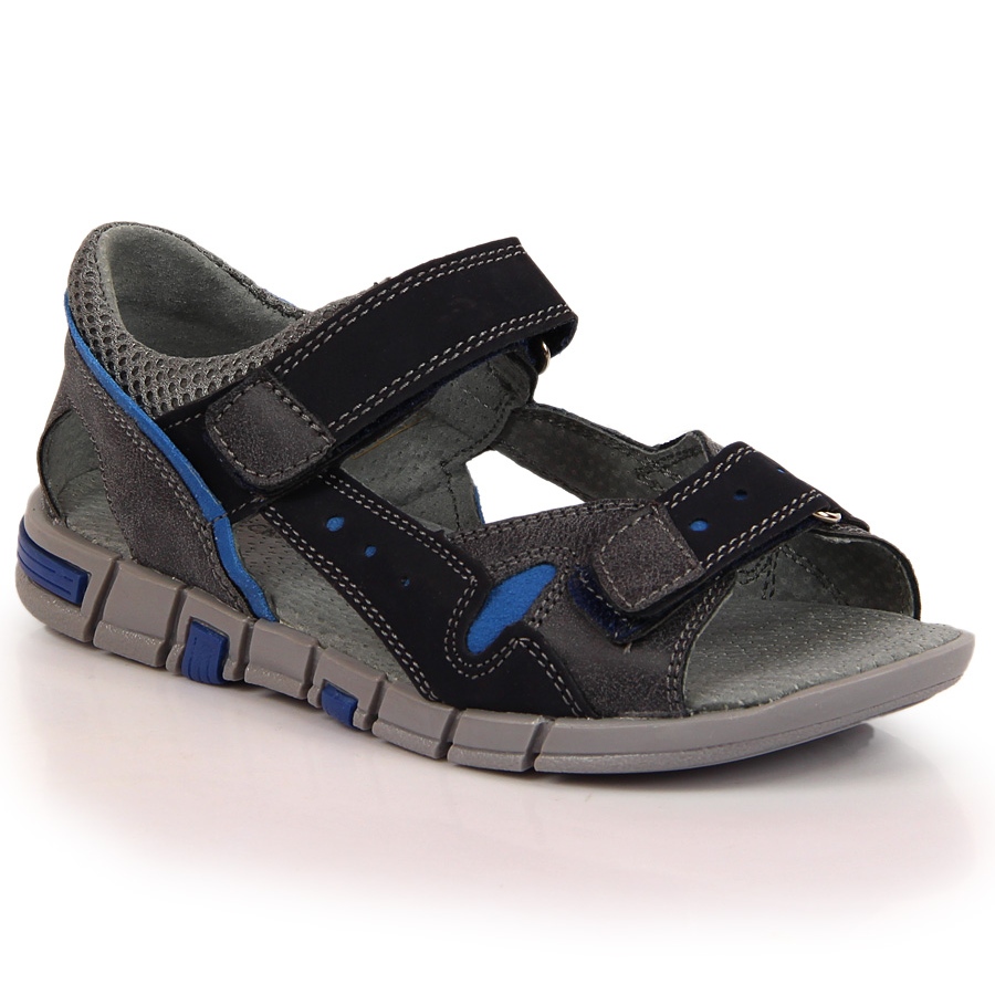 Descoperă sandalele pentru băieți cu velcro bleumarin și gri de la Kornecki, model 6186, care sunt perfecte pentru zilele de vară. Aceste sandale ușoare și confortabile au fost concepute pentru băieții activi care prețuiesc confortul și stilul. Realizate din piele ecologica de inalta calitate, acestea nu sunt doar estetice, ci si functionale, oferind pielii respirabilitate.