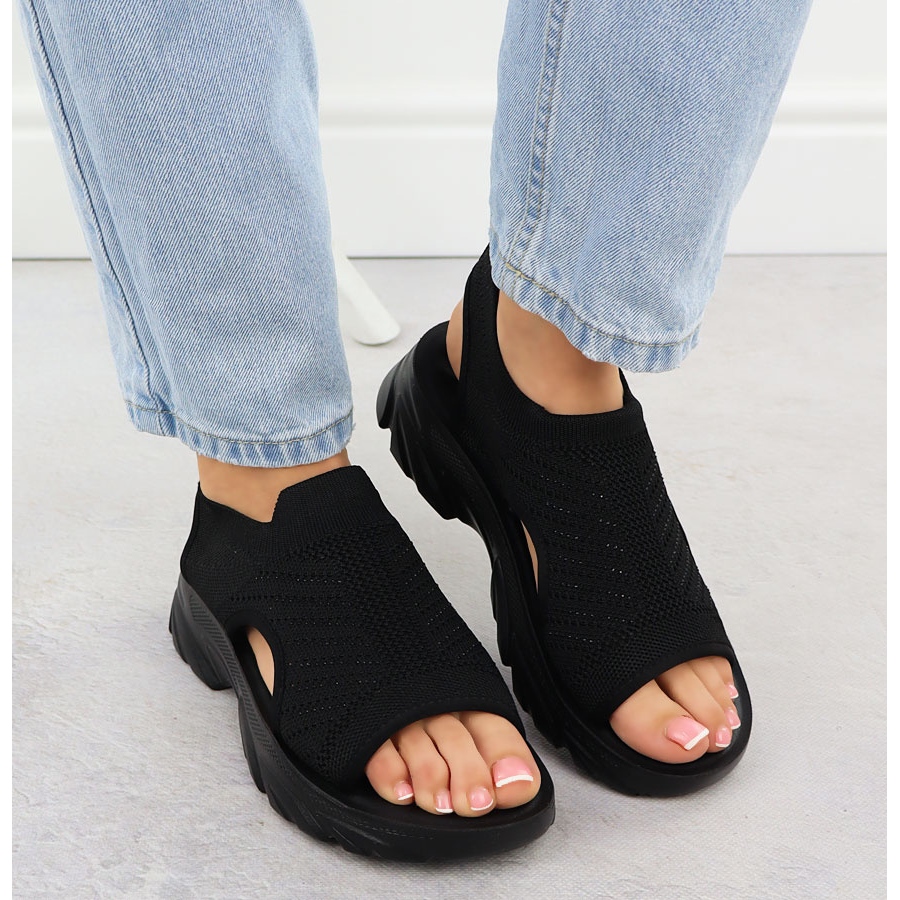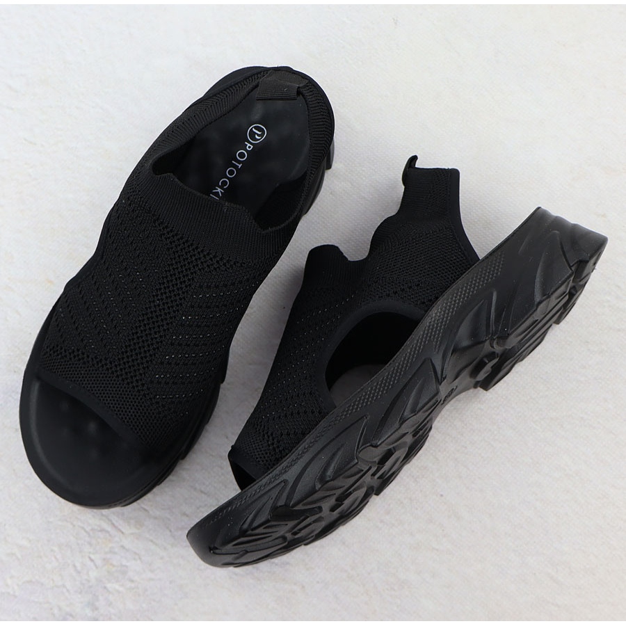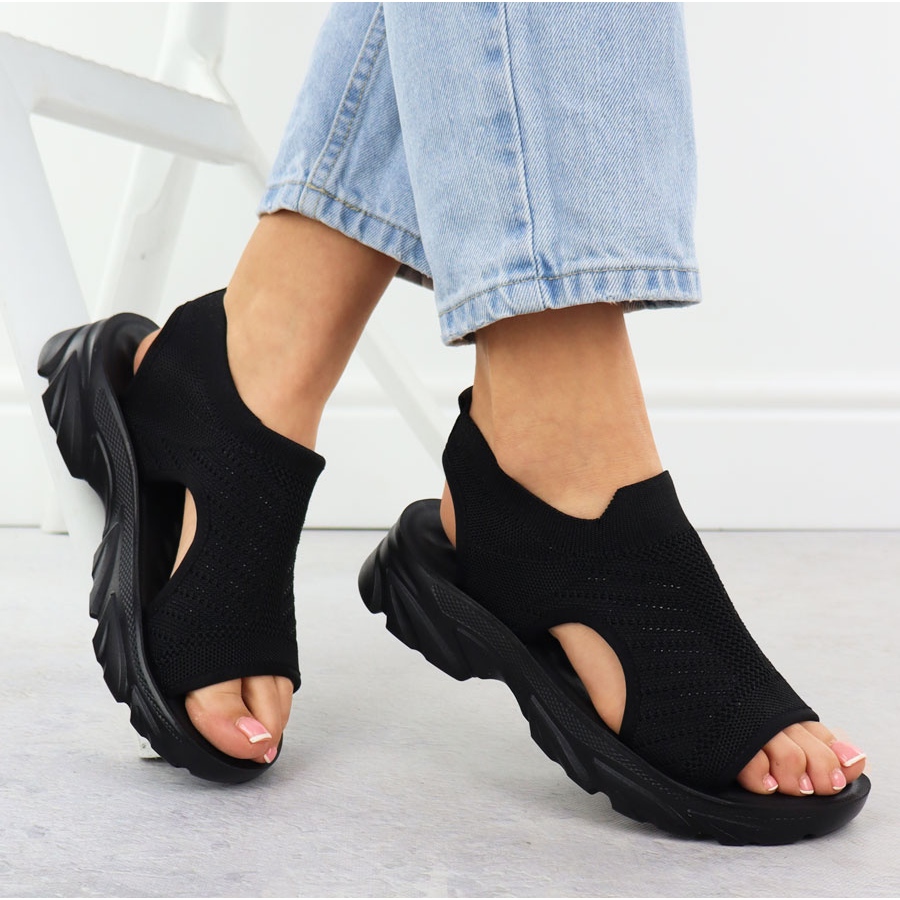Sandalele superioare a fost confecționată din material aerisit și flexibil, ceea ce îl face să se adapteze perfect la picior, oferind confort pe parcursul zilei. Datorită tăierii lor sportive, aceste sandale sunt perfecte atât pentru stilizări de zi cu zi, cât și pentru condiții mai active. Finisajul negru le oferă universalitate, ceea ce vă permite să combinați cu ușurință cu alte articole din garderobă.