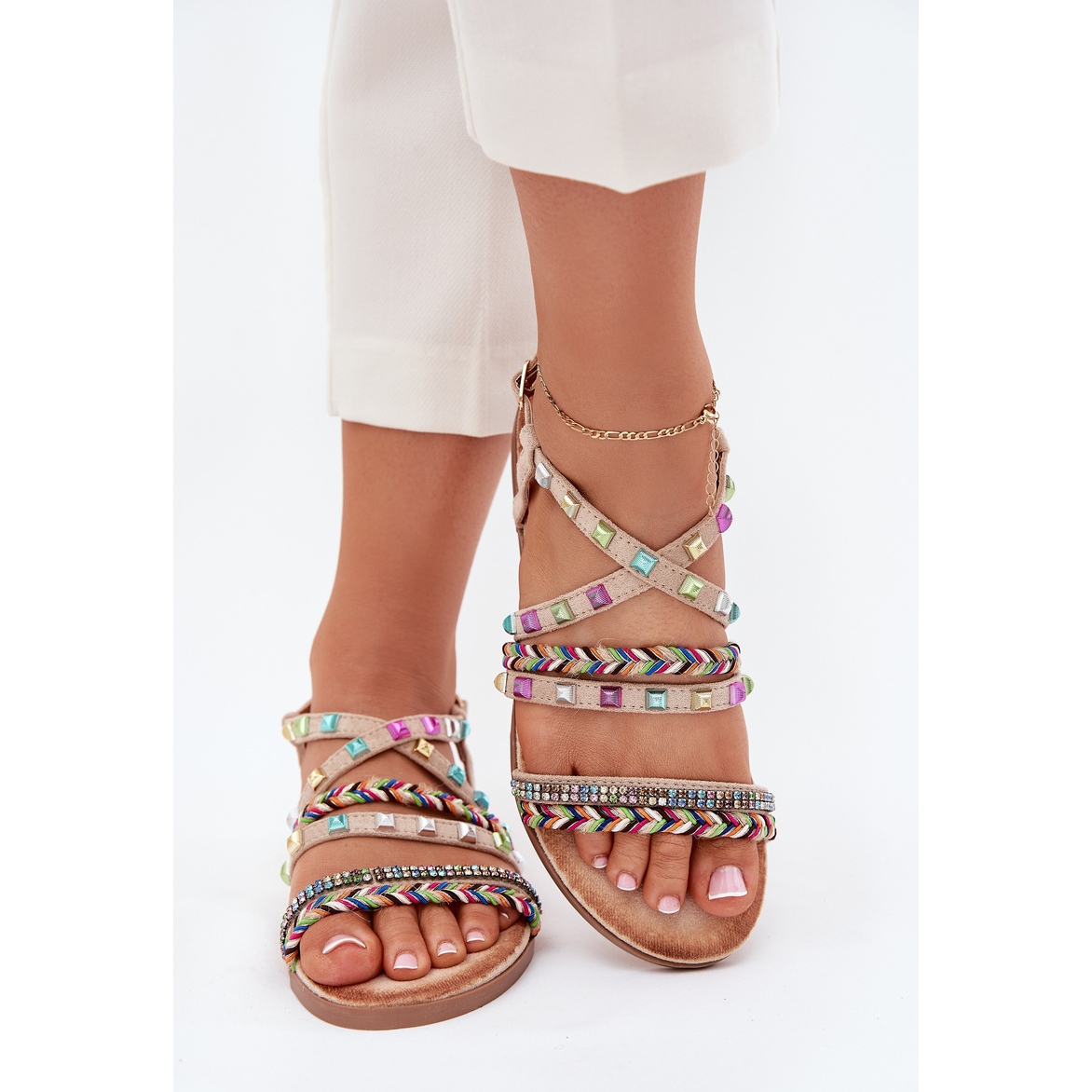 Detalii: Sandale pentru femei cu decorare și dungi țesute bej