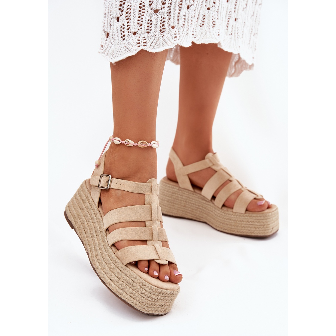 Descoperiți eleganța de vară datorită sandalelor pentru femei bej cu dungi și împletitură. Fabricate din piele de căprioară Eco de înaltă calitate, aceste sandale oferă nu numai un aspect elegant, ci și un confort unic de purtare. Situate pe o platformă cu o pană delicată de 7 cm înaltă, acestea sunt o combinație ideală de subtilitate și stabilitate, ceea ce înseamnă că vă puteți bucura de fiecare pas pe parcursul zilei.