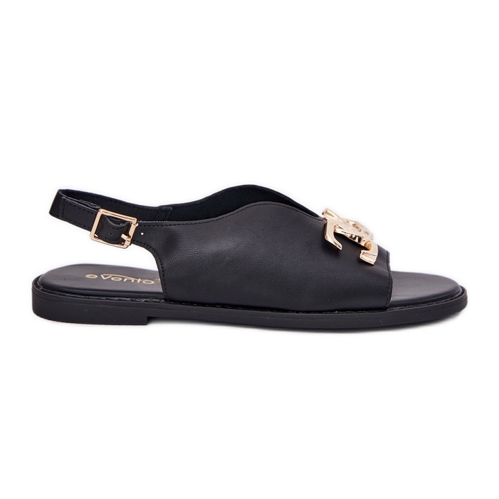 eVento EVento Sandale pentru femei cu o flatară cu un decor auriu negru