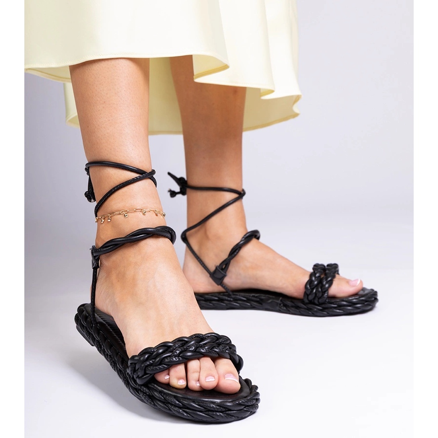 Detalii: Sandale pentru femei negre împletite negru