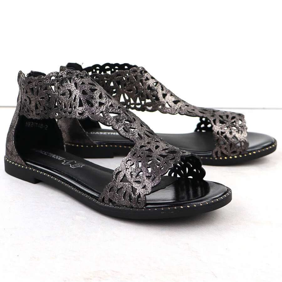 M. DASZYŃSKI Sandale pentru femei Openwork Platinum Czarne M. Daszyński MR24148-2 negru