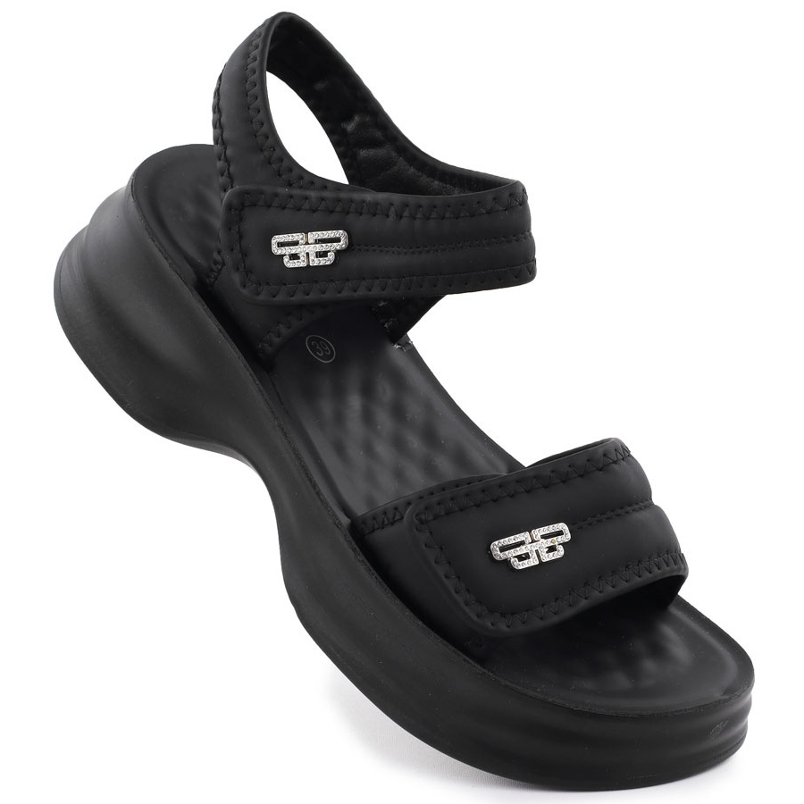 Detalii: Sandale pentru femei pe o talpă groasă cu Velcro Black Potocki 105300 negru