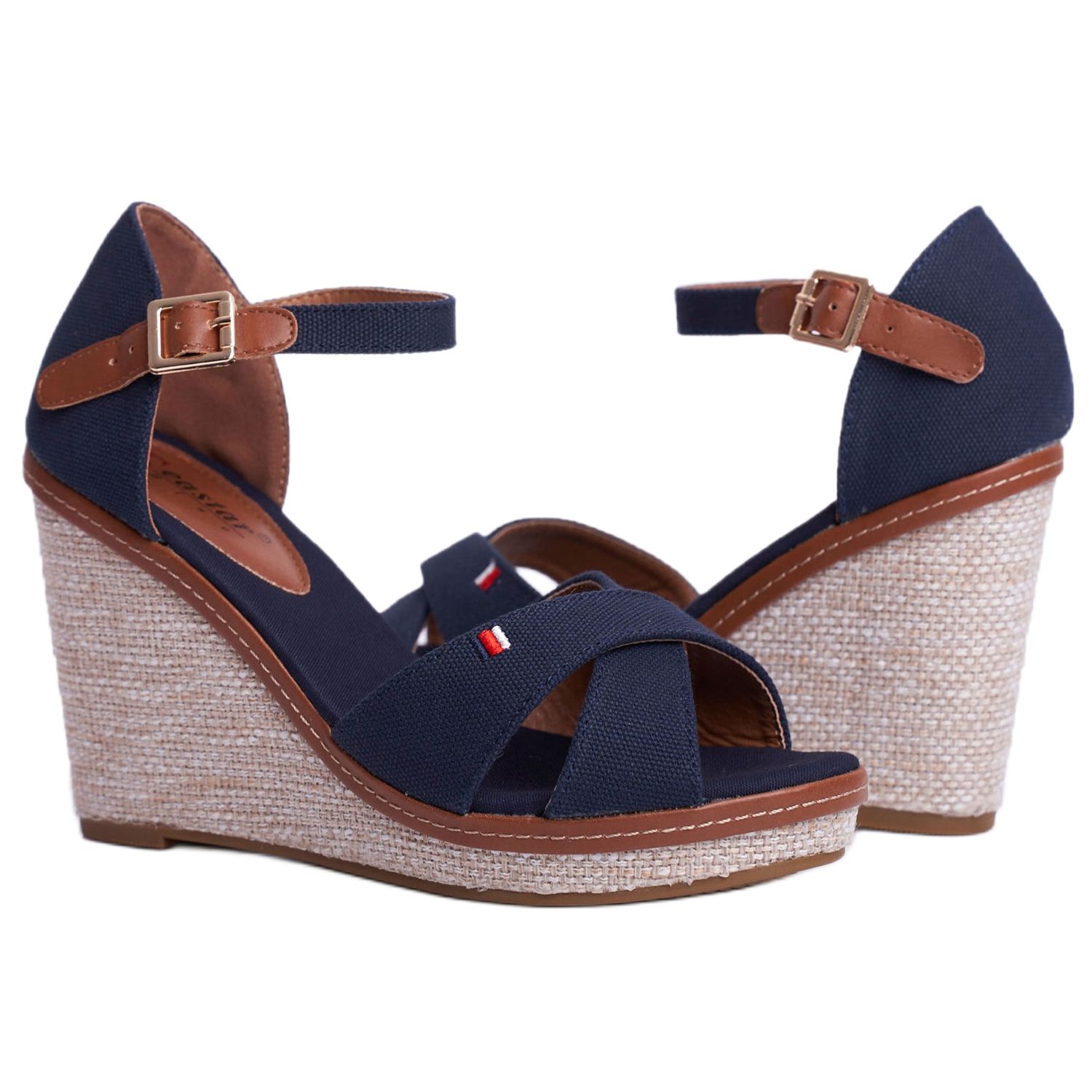 SEA SEA Sandale pentru femei pe pană albastră LaMane maro albastru marin