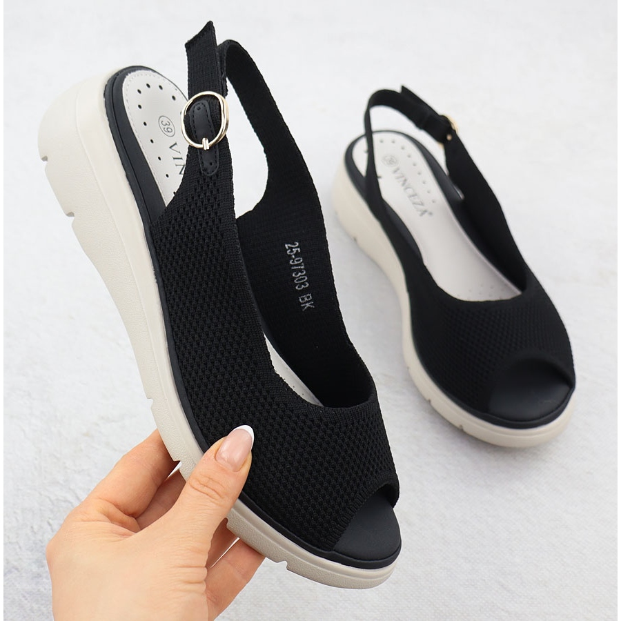 Vinceza Sandale pentru femei pe panouri negre Vinceza 97303 negru