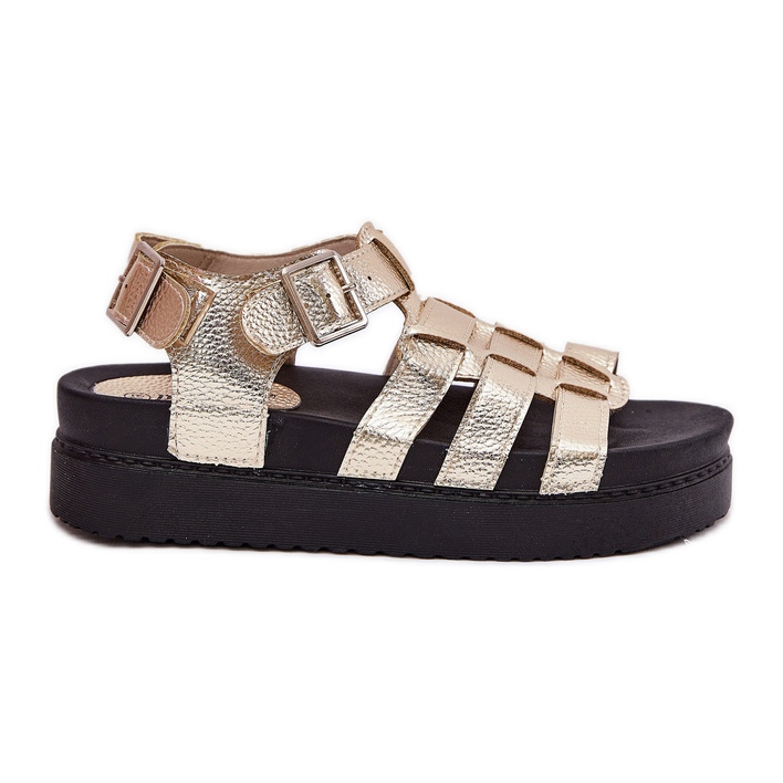 Detalii: Sandale pentru femei pe platformă cu catarame de aur