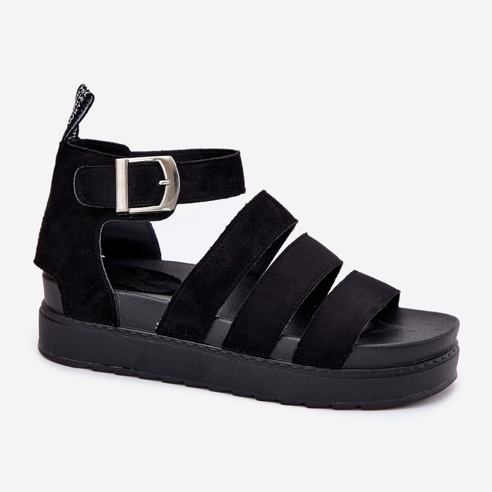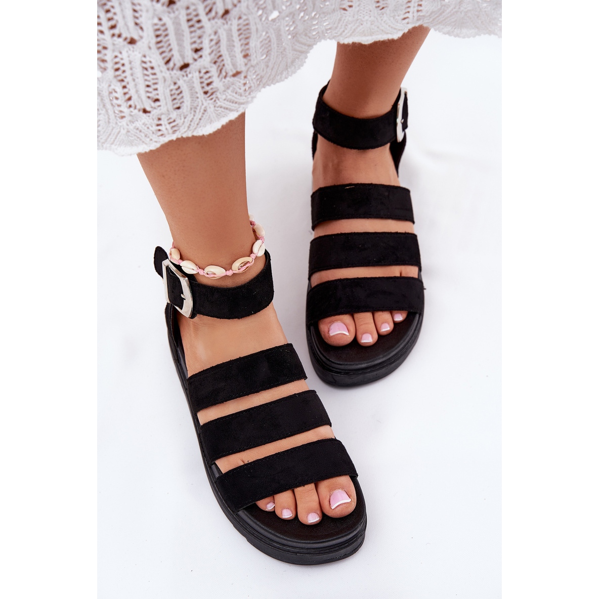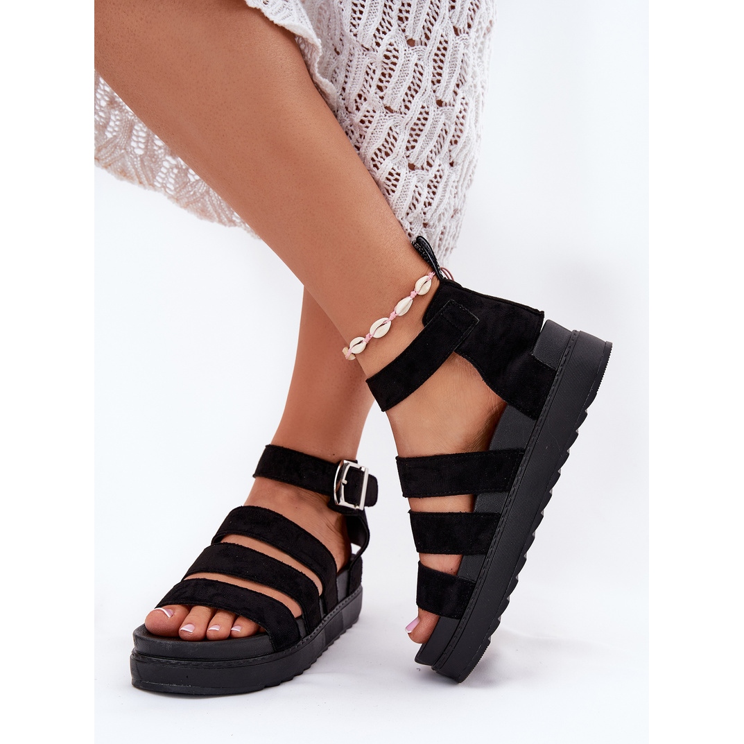 Descoperiți sandalele pentru femei la modă pe platformă cu dungi într -o culoare neagră elegantă. Fabricate din piele de căprioară Eco de înaltă calitate, acestea sunt o alegere excelentă pentru zilele de vară, combinând stilul și confortul. Tăierea sub forma unei platforme înalte de 5,5 cm adaugă nu numai o duzină de centimetri, dar asigură, de asemenea, stabilitatea și comoditatea de a purta toată ziua.