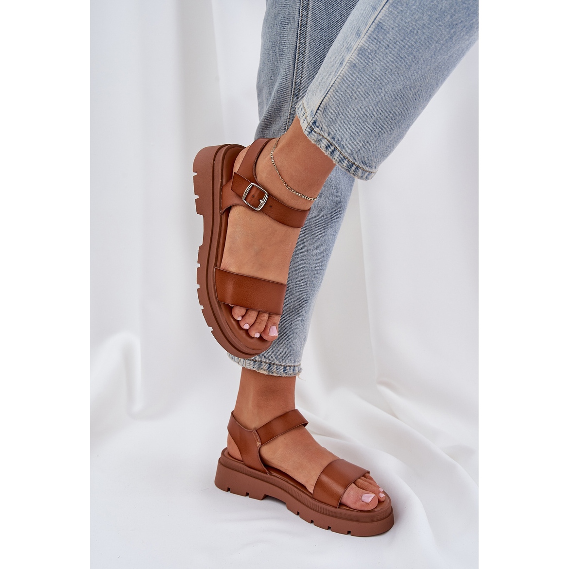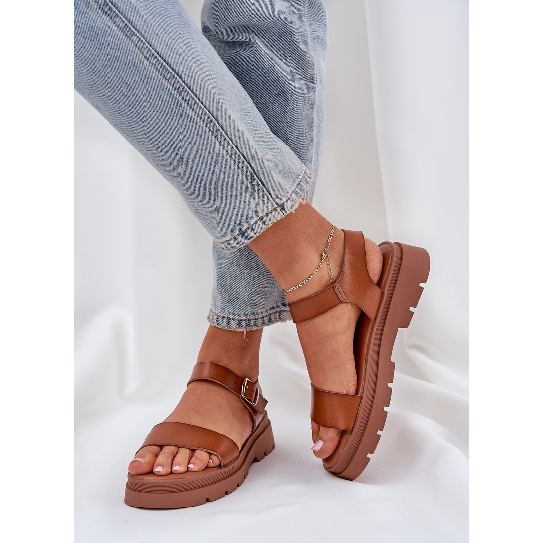 Detalii: Sandale pentru femei pe platforma de cămile maro