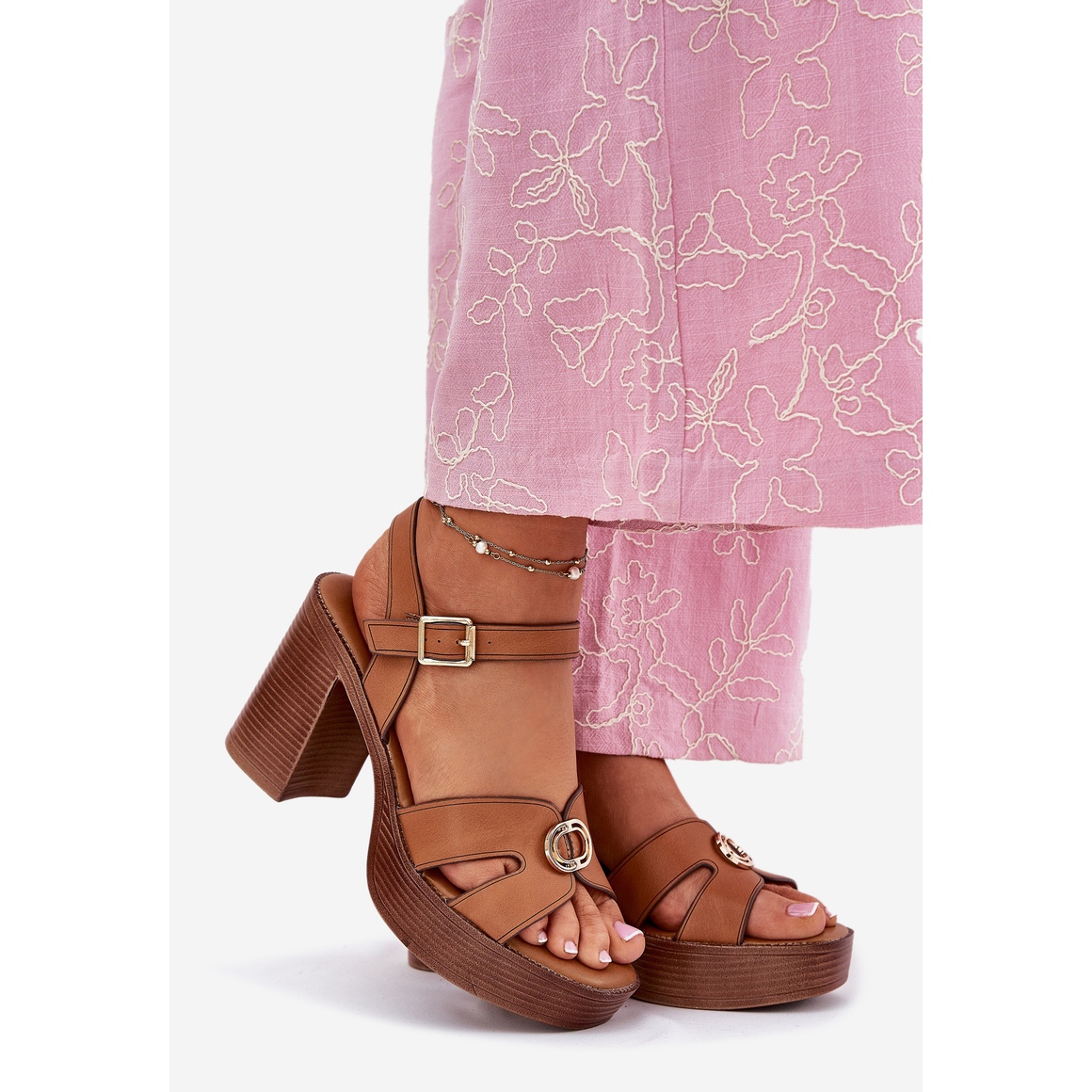 Un post stabil cu o înălțime de 9,5 cm nu numai că oferă un aspect elegant, ci și confortul de a purta pe parcursul zilei. Datorită curelei reglabile fixate cu o cataramă, le puteți adapta cu ușurință la piciorul dvs., ceea ce garantează încrederea și comoditatea pasului.