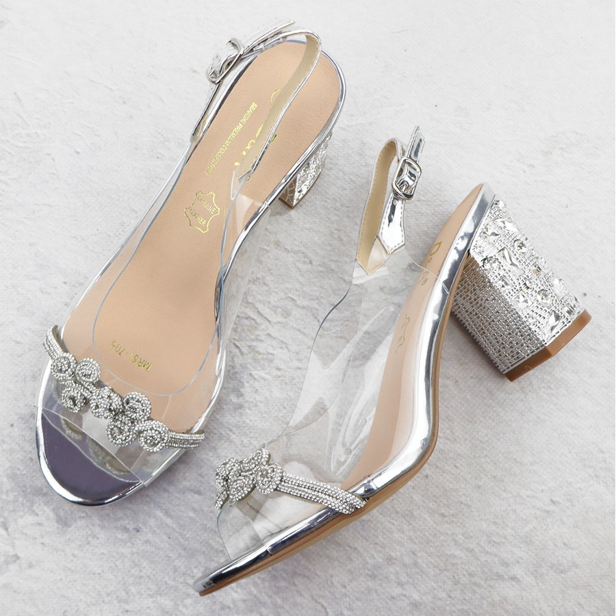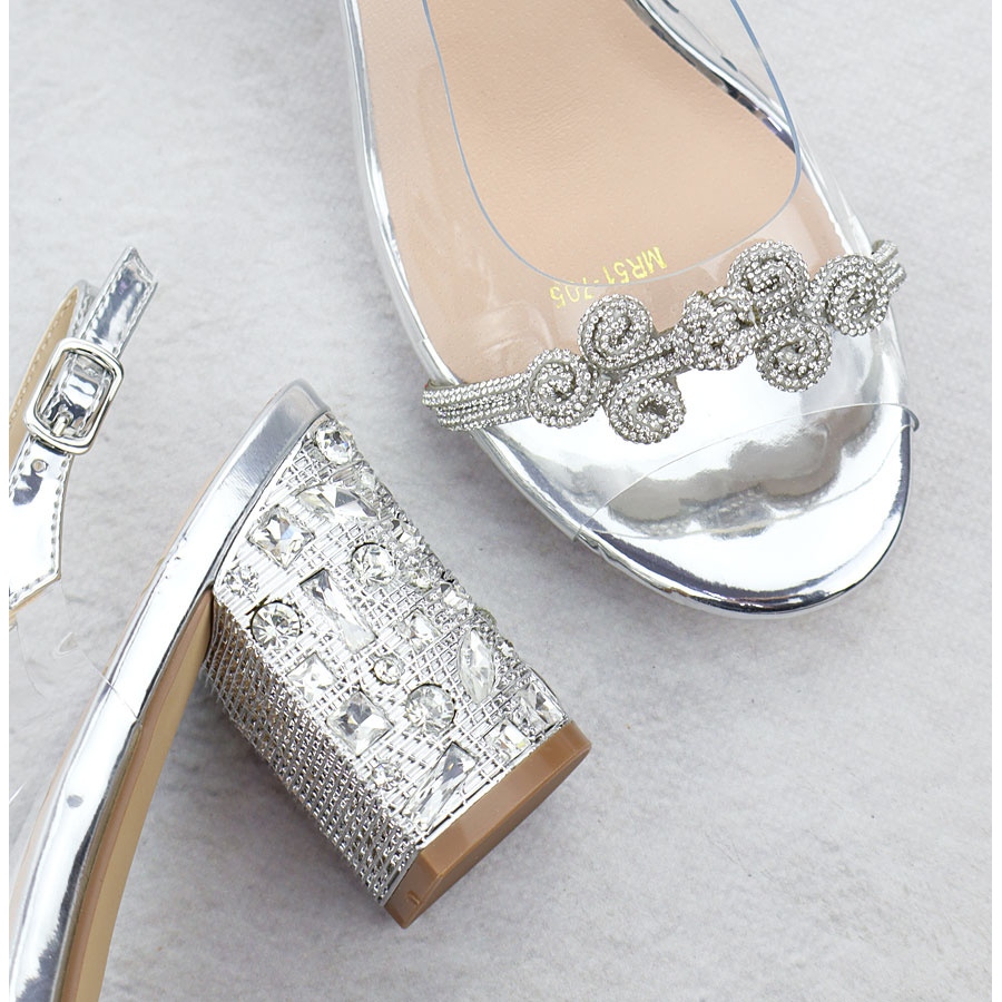 Detalii: Sandale pentru femei transparente pe un post cu zirconi Silver S.Barski MR51-705 argint