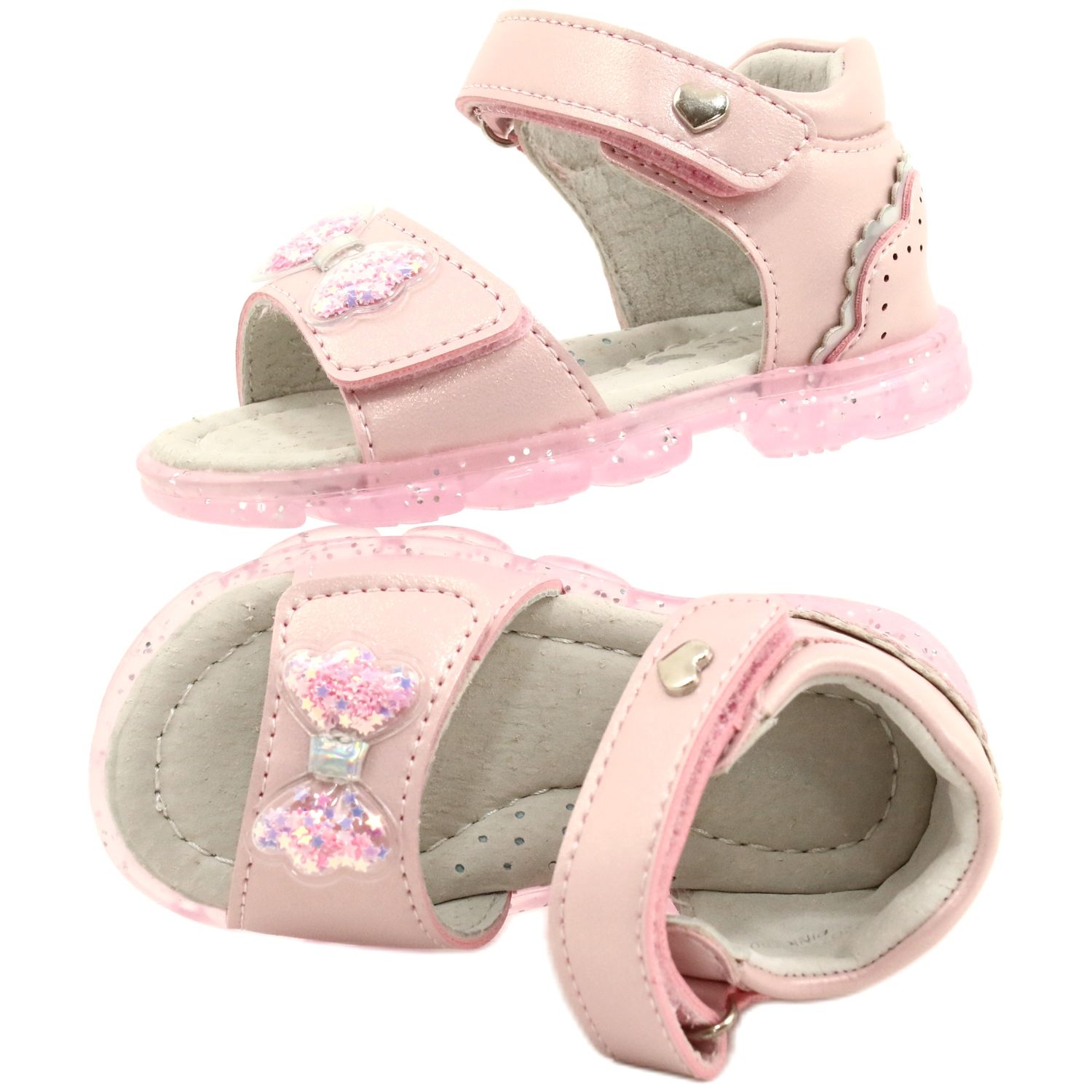 Confectionate din piele ecologica, sandalele au brant profilat din piele naturala, care reduce eficient transpiratia picioarelor, lucru deosebit de important in zilele caniculare. În special, fundițele lor roz și transparente cu stele în interior le conferă un farmec unic, subliniind materialul neted.