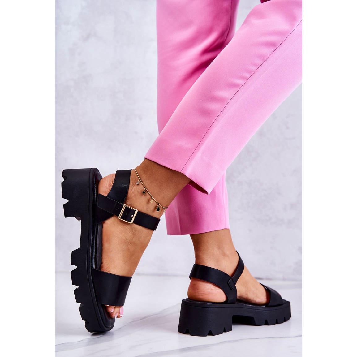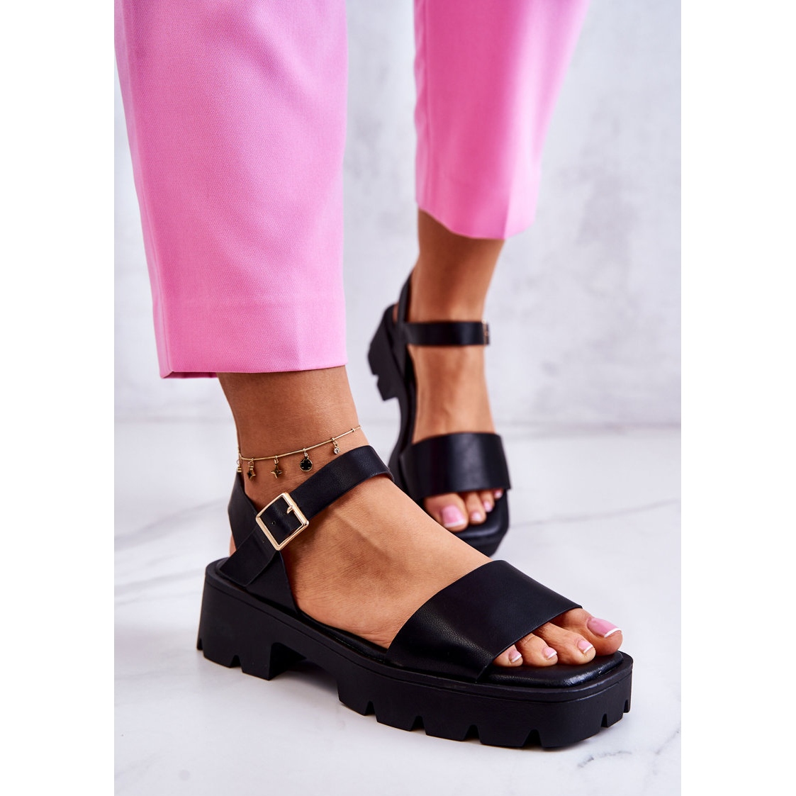 Aceste sandale au toc plat si platforma cu inaltimea totala de 5 cm, ceea ce le face o alegere ideala pentru plimbarile prin oras sau intalnirile cu prietenii. O curea reglabilă cu cataramă pătrată vă permite să ajustați pantofii la nevoile dvs. individuale, ceea ce le crește funcționalitatea ergonomică.