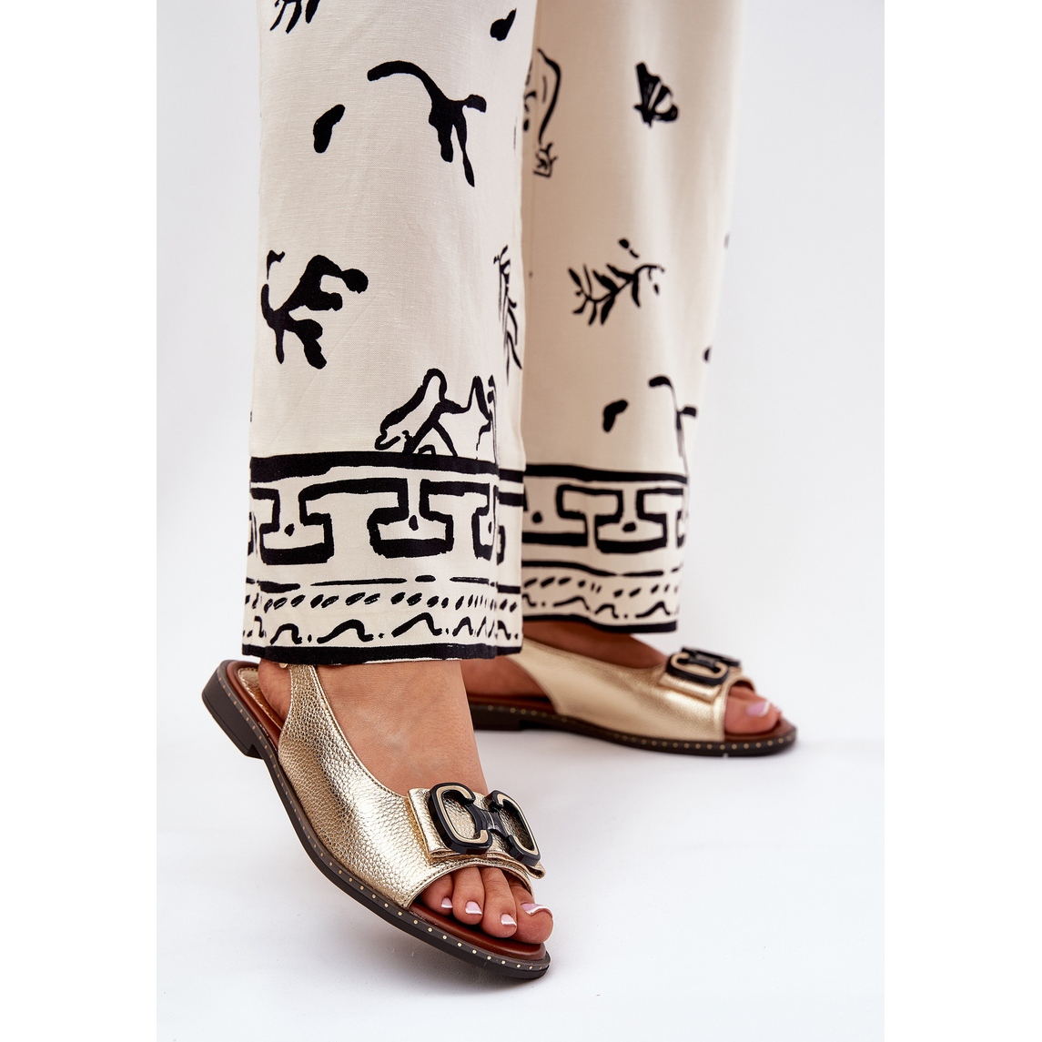 Detalii: Jezzi Sandale plate cu o decorare din piele ecologică de aur